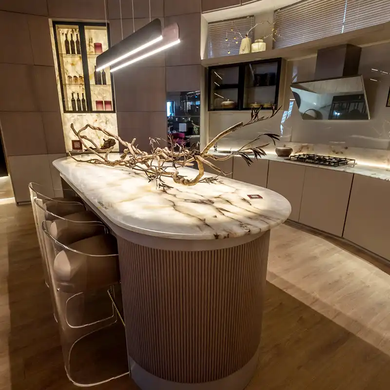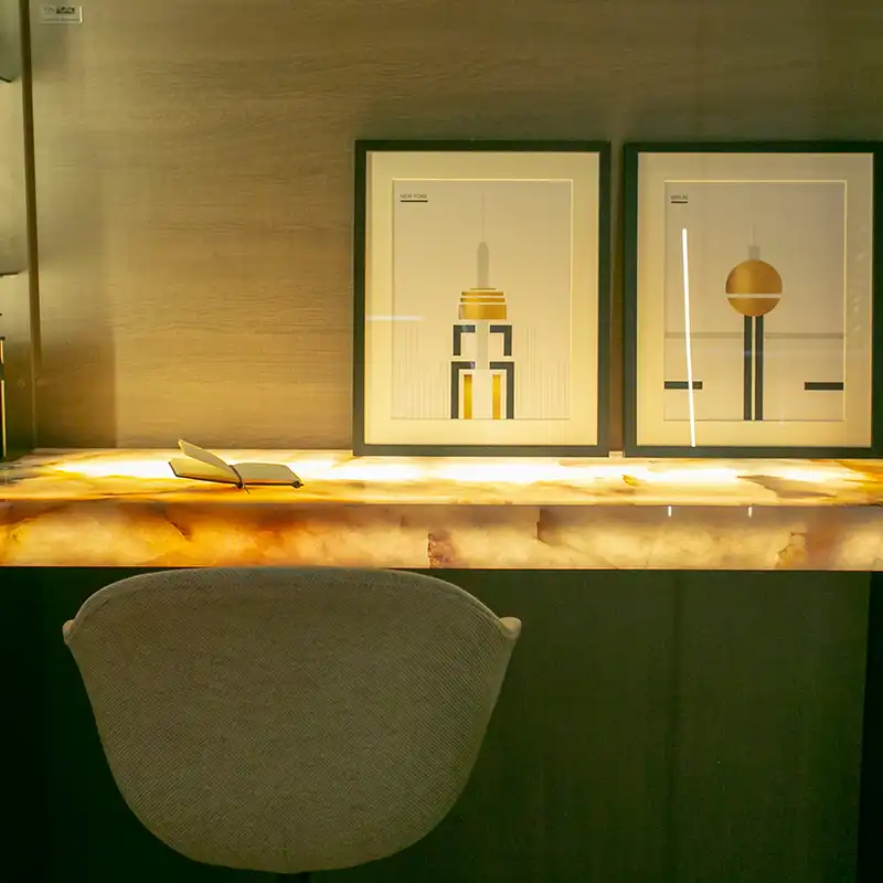 Este cuarzo natural sintetiza la belleza simple y armoniosa de un material que engrandece los espacios. Sutileza, elegancia y luminosidad. Tiene la particularidad de retoiluminarse, generando ambientes aún más esplendorosos, permitiendo así aprecisar su exquisito diseño.
