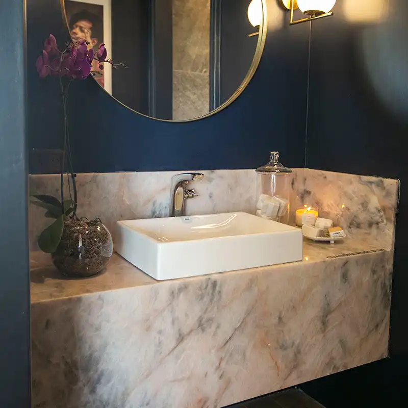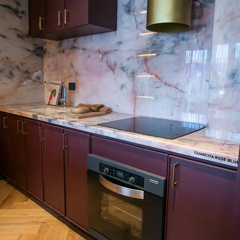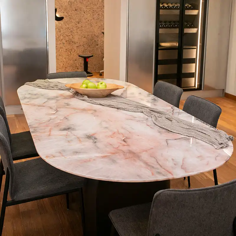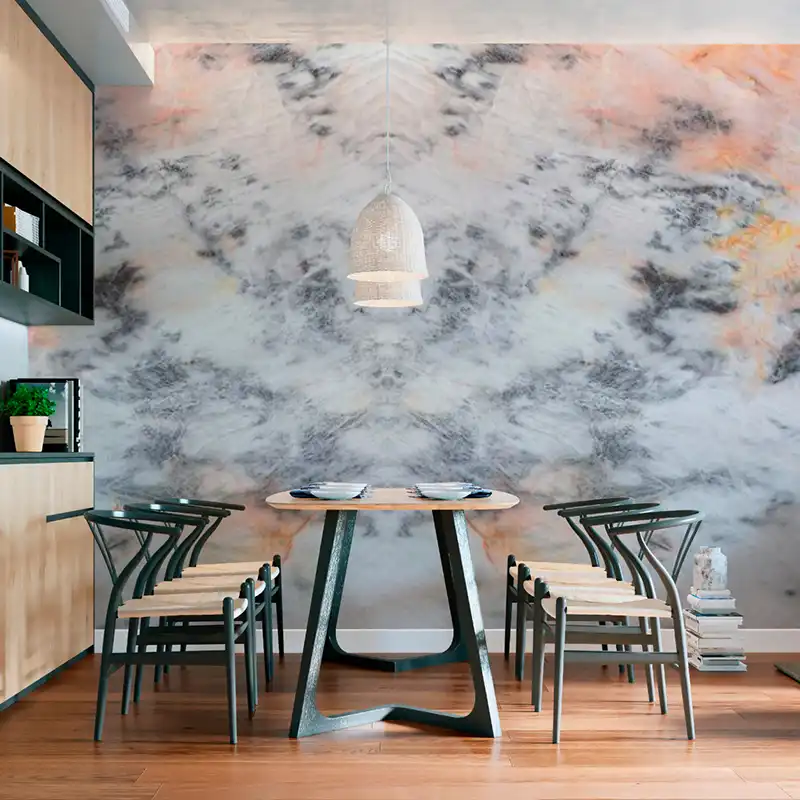 Sus colores cálidos esplendorosos, recorren las tonalidades de los naranjas, ocres y amarillos. Con total fuerza y exotismo remite a espectaculares suelos volcánicos, creando una personalidad única, añadiendo exclusividad y suma elegancia.