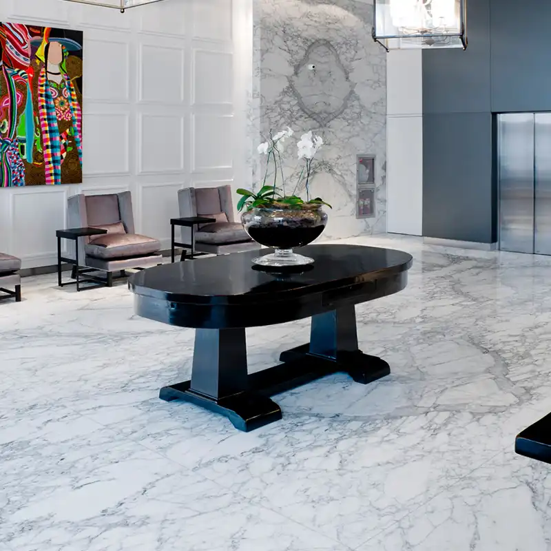 Cuando se trata de combinaciones, este material es un ejemplo para diversos ambientes en donde todo concuerda a la perfección. Con fondo blanco y trama tupida en distintos tonos de grises, viste y se amalgama en todo tipo de espacios. Se destaca con su apariencia sencilla y armónica sin perder el carácter y el porte.